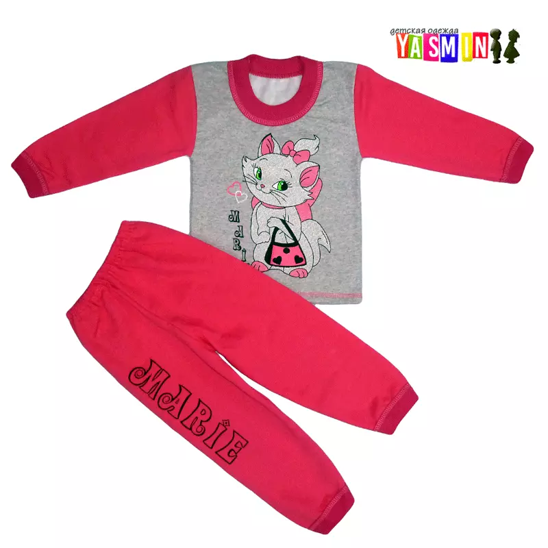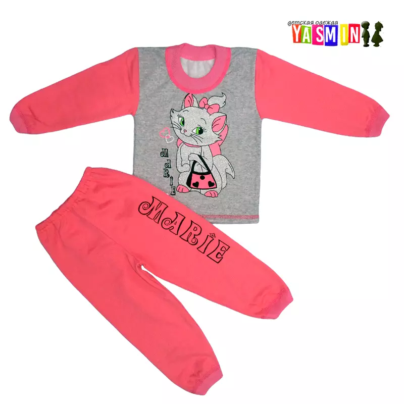 Милая и теплая пижама для девочек с изображением кошечки Marie. Для изготовления используется качественная трикотажная ткань с начесом. Она мягкая, приятная к телу, не колется, при этом хорошо пропускает воздух, впитывает влагу тела, а начес согревает. Это идеальная модель для прохладного времени года.